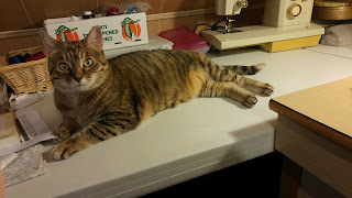 what a cutie ... although I think i saw those exact same stripes on a tiger in the zoo last week ... my cat is getting too old to help me in the sewing room now. She doesn't make it upstairs as often as she used to!