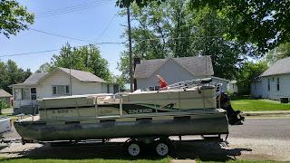 We did end up with a new purchase. Well, not really new, but new to us. We bought a boat! It's a 24' pontoon boat with a 115hp engine. It's a 1999 model, but was kept in pristine condition. Ev is over the moon about it. We have not gotten it out on the water yet. Just picked it up over the weekend.